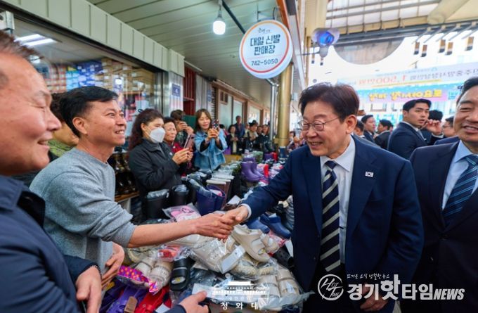 [경기핫타임뉴스=김삼영 기자] 이재명 대통령은 25일 오후 한국항공우주산업(KAI)에서 열린 KF-21 양산 1호기 출고식에 참석한 뒤 경남 진주시에 위치한 진주중앙시장을 깜짝 방문해 민심을 청취했다.