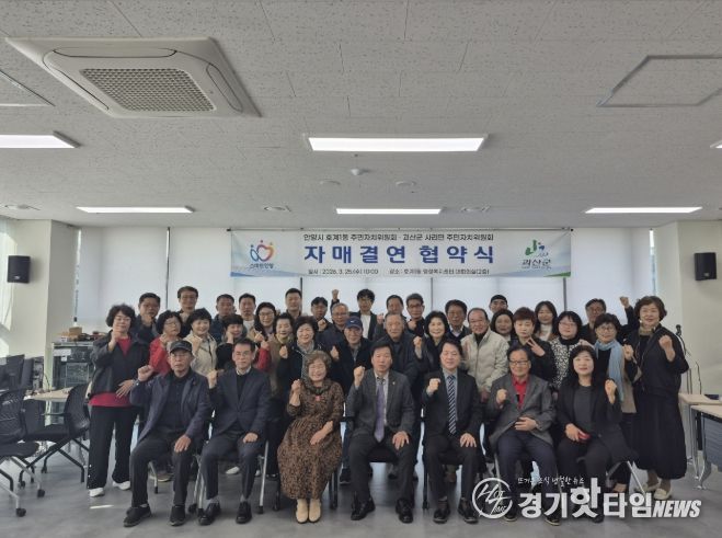 [경기핫타임뉴스=김삼영 기자] 안양시 동안구 호계1동 주민자치위원회는 지난 25일 호계1동 행정복지센터에서 충북 괴산군 사리면 주민자치위원회와 상생 발전 및 도농 교류 활성화를 위한 자매결연 협약을 체결했다.