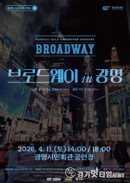 [경기핫타임뉴스=김삼영 기자] (재)광명문화재단은 오는 4월 11일 오후 2시와 6시, 광명시민회관에서 크로스오버 콘서트 '브로드웨이 IN 광명'을 개최한다.