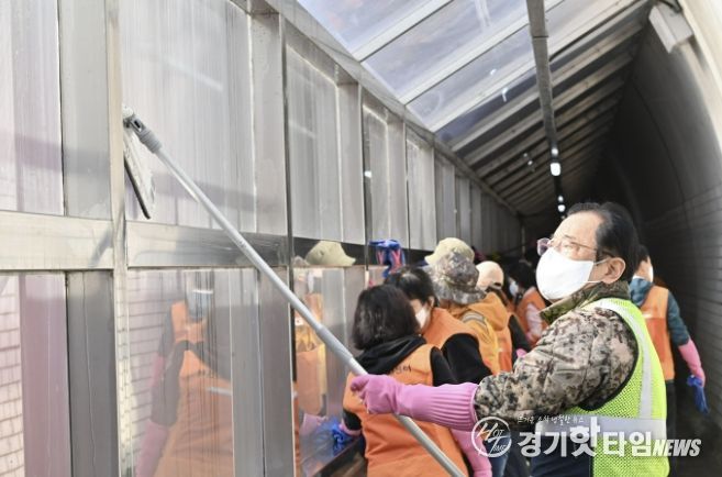 이날 집중 정비가 이뤄진 보행로 칸막이 부스는 지난 2020년 12월 터널 내 차량 배기가스와 소음으로부터 주민들을 보호하기 위해 경기도 특별조정교부금 15억 원이 투입되어 조성된 안전 시설물이다. 시는 이번 대청소를 통해 부스 창 등에 쌓인 찌든 때를 말끔히 제거하며 시민들에게 더욱 쾌적한 보행 공간을 선사했다.