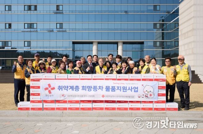 [경기핫타임뉴스=김형철 기자] 대한적십자사봉사회 양주시협의회(회장 정진수)는 지난 25일 시청 원형광장 앞에서 ‘희망풍차 물품 전달식’을 개최했다.