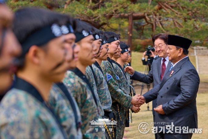 [경기핫타임뉴스=김삼영 기자] 이재명 대통령과 국빈 방한한 프라보워 수비안토 인도네시아 대통령은 오늘 오후 청와대 녹지원에서 육군 태권도 시범대 공연을 관람했다.