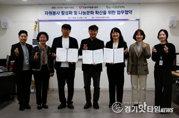 [경기핫타임뉴스=김삼영 기자] 안성시자원봉사센터는 지난 6일, 안성시자원봉사센터 강의실에서 (사)마을과사람들, 경기도아동돌봄안성센터와 지역사회 복지 발전 및 나눔 문화 확산을 위한 업무협약을 체결했다.