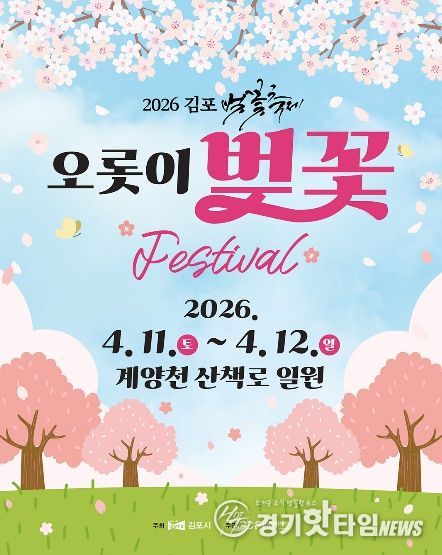 [경기핫타임뉴스=김형철 기자] (재)김포문화재단은 오는 4월 11일부터 12일까지 이틀간 계양천 산책로 일원에서 '2026 김포 벚꽃축제 '오롯이 벚꽃''을 개최한다고 밝혔다.