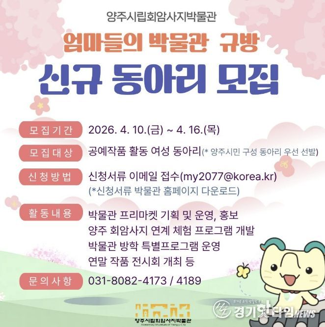 [경기핫타임뉴스=김형철 기자] 양주시립회암사지박물관은 오는 10일부터 공예 및 아트상품 분야에 관심 있는 여성들을 대상으로 ‘엄마들의 박물관 규방’ 동아리를 모집한다.
