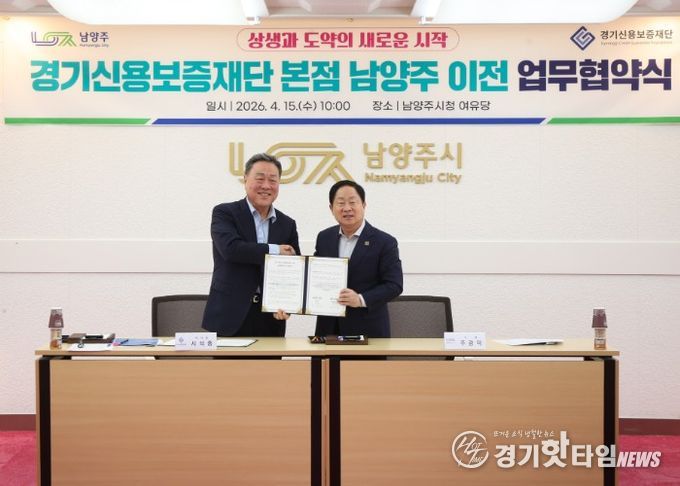 [경기핫타임뉴스=김형철 기자] 남양주시는 15일 시청 여유당에서 경기신용보증재단과 본점 이전을 위한 업무협약을 체결했다고 밝혔다.