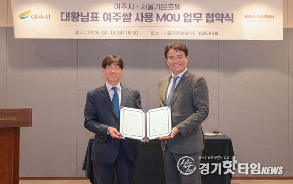 [경기핫타임뉴스=김형철 기자] 여주시는 지난 4월 14일 서울 마포구 서울가든호텔 아젤리아홀에서 서울가든호텔과 ‘대왕님표 여주쌀 사용 확대 및 공동 협력을 위한 업무협약(MOU)’을 체결했다.