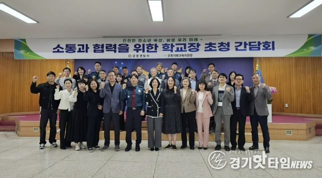[경기핫타임뉴스=김삼영 기자] 군포의왕교육지원청과 군포경찰서는 4월 16일 군포경찰서 4층 ‘수리관’에서 중학교 교장을 대상으로 학생 안전을 위한 간담회에 참여하여 학교폭력예방 및 학교장의 안전 관리 지원에 협력과 소통을 강화하기로 했다.