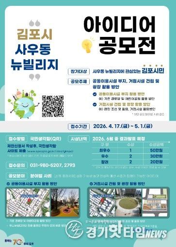 [경기핫타임뉴스=김형철 기자] 김포시가 사우동 뉴빌리지 사업의 일환으로 원도심에 새로운 활력을 불어넣기 위해 ‘2026 사우동 뉴빌리지 시민 아이디어 공모전’을 개최한다고 밝혔다.