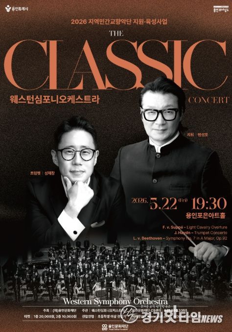 [경기핫타임뉴스=김삼영 기자] 용인문화재단은 오는 5월 22일 오후 7시 30분, 용인포은아트홀에서 기획공연 '콘서트 'The 클래식''을 개최한다. 이번 공연은 ‘2026년 지역민간교향악단 지원육성사업’의 일환으로 진행되며, 세대를 아우르는 클래식 명곡들을 통해 시민들에게 클래식의 매력을 가까이에서 느낄 수 있도록 마련됐다.