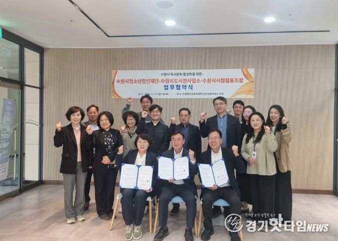 [경기핫타임뉴스=김삼영 기자] 수원시 도서관사업소와 수원시청소년청년재단, 수원시서점협동조합이 지역 독서문화 활성화와 시민 독서활동 증진을 위해 협력하기로 했다.
