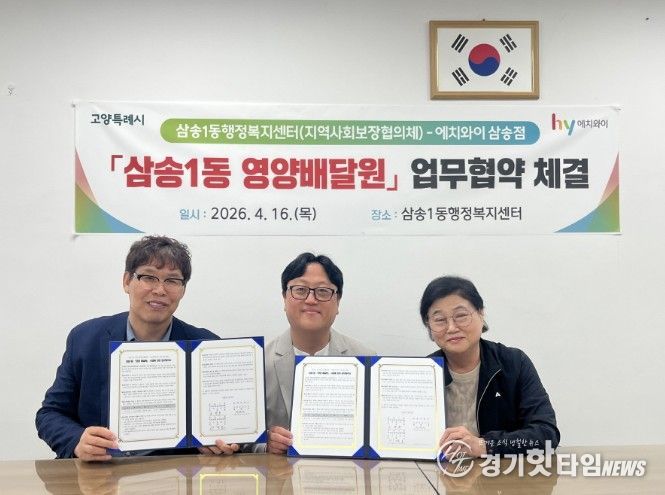 [경기핫타임뉴스=김형철 기자] 고양특례시 삼송1동은 지난 16일 취약계층의 건강과 안부를 동시에 살피는 ‘영양배달원’사업 추진을 위해 지역사회보장협의체와 ㈜에치와이 고양 삼송지점이 업무협약을 체결했다.