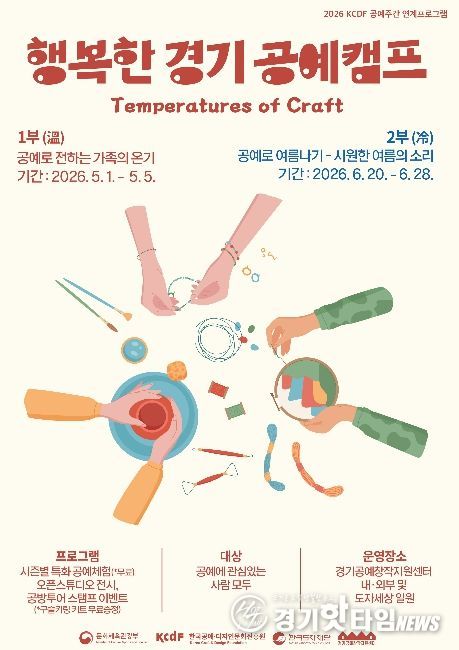 [경기핫타임뉴스=김삼영 기자] 한국도자재단이 오는 5월 1일부터 경기공예창작지원센터(여주) 일원에서 체험·전시·이벤트를 결합한 참여형 프로그램 ‘2026 행복한 경기 공예 캠프’를 개최한다.