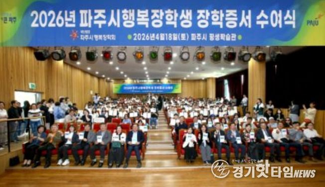 [경기핫타임뉴스=김형철 기자] 파주시는 (재)파주시행복장학회가 지난 18일 파주시 평생학습관 대공연장에서 학부모와 장학생 등 200여 명이 참석한 가운데 2026년 장학증서 수여식을 개최했다고 밝혔다.