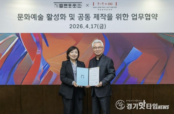 [경기핫타임뉴스=김삼영 기자] 경기문화재단 백남준아트센터와 재단법인 세종문화회관은 4월 17일, 동시대 예술의 담론 확장과 지속가능한 창작 생태계 조성을 위한 업무협약(MOU)을 체결했다. 이번 협약은 양 기관의 상호존중과 신뢰를 바탕으로, 서울과 경기 지역을 연결하는 광역 문화권 공동제작 모델을 구축하기 위한 협력의 출발점으로 마련됐다.
