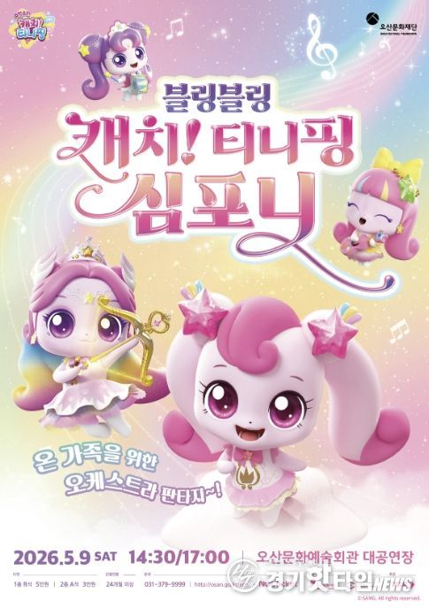 [경기핫타임뉴스=김삼영 기자] 오산문화재단은 어린이날을 맞아 온 가족이 함께 즐길 수 있는 오케스트라 공연 ‘블링블링 캐치! 티니핑 심포니’를 선보인다고 밝혔다. 이번 공연은 인기 애니메이션 ‘캐치! 티니핑’ 시리즈의 OST를 오케스트라 라이브로 감상할 수 있는 무대로, 어린이뿐 아니라 가족 단위 관람객들에게 특별한 문화 경험을 제공할 예정이다.