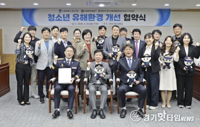 [경기핫타임뉴스=김삼영 기자] 수원시 권선구는 지난 20일, 수원권선경찰서, 법무부 청소년 범죄예방위원 권선지구위원회와 함께 청소년 유해환경 개선을 위한 업무협약을 체결하고, '아름드리 동행' 장학금 전달식을 개최했다.