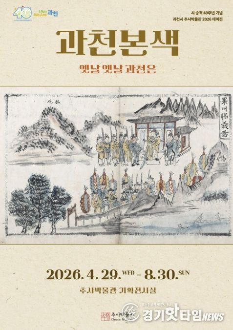 [경기핫타임뉴스=김삼영 기자] 과천시 추사박물관은 시 승격 40주년을 기념하여 ‘2026 테마전 '과천본색–옛날 옛날 과천은'’을 개최한다고 밝혔다. 이번 전시는 4월 29일 오후 3시 개막식을 시작으로 8월 30일까지 추사박물관 기획전시실에서 진행된다.
