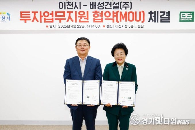 [경기핫타임뉴스=김형철 기자] 이천시가 22일 배성건설㈜와 203억 원 규모의 투자업무지원협약을 체결하고, 기업의 신규 공장 신설을 본격 지원한다.