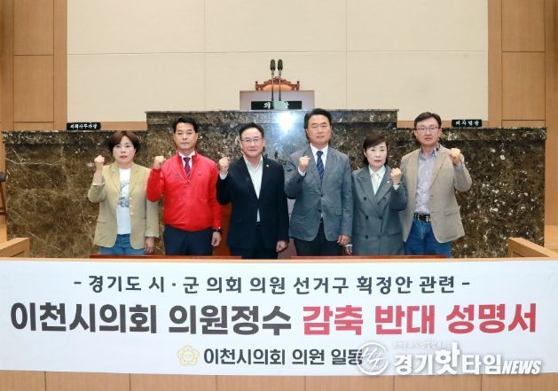 [경기핫타임뉴스=김형철 기자] 이천시의회 의원 일동은 23일 본회의장에서 “경기도 시·군의원 선거구획정안”과 관련해 이천시 의원 정수 감축에 반대하는 공식 입장을 밝혔다. 최근 경기도 시·군의원 선거구획정위원회가 경기도의회에 제출한 초안에는 이천시 의원정수를 기존보다 1명 축소하는 방안이 포함된 것으로 알려졌다.