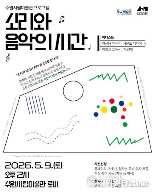 [경기핫타임뉴스=김삼영 기자] 경기도 수원시립미술관은 을 맞아 소리를 주제로 한 음악 프로그램 '소리와 음악의 시간'을 5월 9일 개최하며 참여자를 모집한다.
