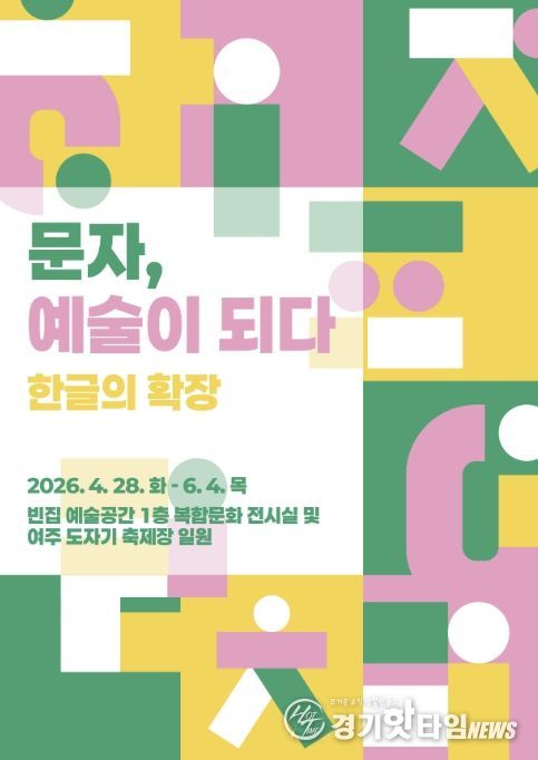 [경기핫타임뉴스=김형철 기자] 여주세종문화관광재단은 오는 4월 28일부터 6월 4일까지 빈집 예술공간 1층에서 기획전시 《문자, 예술이 되다 - 한글의 확장》를 개최한다고 밝혔다.