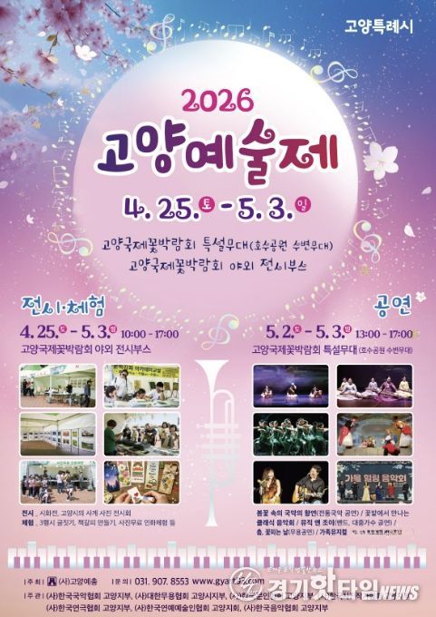 [경기핫타임뉴스=김형철 기자] 고양특례시의 봄을 수놓는 지역 예술 축제 ‘2026 고양예술제’가 오는 5월 3일까지 고양국제꽃박람회 특설무대와 야외 전시부스에서 개최된다.