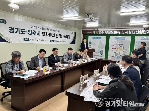 [경기핫타임뉴스=김삼영 기자] 경기도는 27일 경기양주 테크노밸리 현장사무소에서 ‘경기도–양주시 투자유치 전략합동회의’를 열고, 양주시 주요 개발사업 현황을 공유하며 투자유치 협력 방안과 실행 전략을 논의했다.