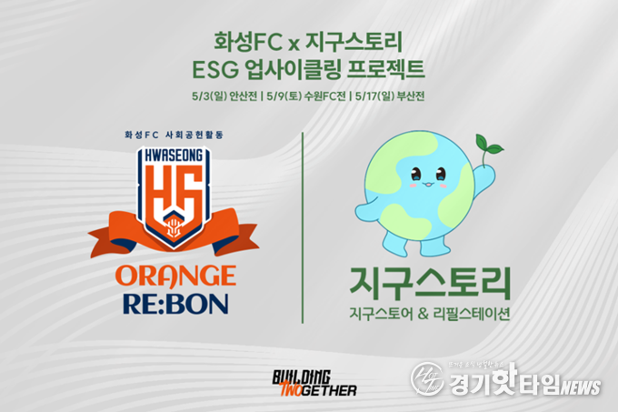 [경기핫타임뉴스=김삼영 기자] 화성FC가 화성시 관내 제로웨이스트 기업 '지구스토리'와 협업해 5월 홈경기 3연전에 걸쳐 팬 참여형 ESG 업사이클링 캠페인을 진행한다.