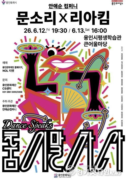 ‘춤이 말하다’용인 공연은 배우 문소리와 K-POP 안무가 리아킴이 출연하는 렉처 퍼포먼스 형식의 공연으로, 춤과 삶에 관한 이야기를 무대 위에서 직접 풀어낸다. 퍼포먼스(안무)와 토크가 결합한 구성으로 두 예술가가 걸어온 길과 창작 과정, 무대 뒤 이야기를 관객과 공유한다. 또한 배우와 K-POP 안무가라는 서로 다른 분야에서 활동하는 두 인물이 춤이라는 공통 언어를 통해 어떻게 자신만의 표현 세계를 구축해 왔는지 조명하며 관객에게 영감을 전할 예정이다.