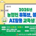 [경기핫타임뉴스=김삼영 기자] 안성시농업기술센터는 지역 농업인의 디지털 매체 활용 능력을 높이고 농산물 홍보 역량을 강화하기 위해 ‘2026년 농업인 유튜브·블로그·AI 활용 교육’ 교육생을 모집한다. 이번 교육은 블로그 운영뿐만 아니라 인공지능(AI)과 유튜브 동영상을 접목한 실전형 교육 과정으로 구성됐다. 안성시농업기술센터는 오는 2월 24일부터 3월 18일까지 매주 화·수·목요일 총 11회에 걸쳐 정보화교육장에서 전문 교육을 실시한다. 교육 내용은 블로그 만들기 및 AI를 활용한 게시물 작성 방법, 유튜브 채널 개설과 프로필 작성, 스마트폰을 활용한 동영상 촬영 및 편집 기술 등 실무 위주로 편성됐다. 교육 신청은 2월 2일부터 2월 20일까지 안성시청 홈페이지를 통한 온라인 접수 또는 농업지도과 방문 접수로 가능하다. 모집 인원은 10명 내외이며, 신청 시 교육참여신청서와 농업경영체등록확인서를 제출해야 한다. 합격자는 선정 후 문자로 개별 통보되며, 수료를 위해서는 전체 과정의 80% 이상 출석이 필요하다. 안성시농업기술센터 관계자는 “농업인이 직접 AI와 유튜브를 활용하여 고품질의 홍보 콘텐츠를 생산함