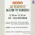 [경기핫타임뉴스=김형철 기자] 부천시는 설 명절을 앞두고 2월 10일부터 12일까지 시청 정문 앞에서 ‘2026년 설 명절맞이 농산물 직거래장터’를 연다. 이번 직거래장터에는 공주시, 무주군, 옥천군, 진도군, 봉화군 등 자매결연 도시를 포함해 서산시, 안동시, 부천 지역 전통시장(한신시장, 제일시장), 팔도향우회(강원·호남)가 함께한다. 각 지역 참가 단체는 직접 재배한 농수산물과 특산품을 준비해, 시민들이 설 차례상과 선물용으로 활용할 수 있도록 다양한 성수품을 선보일 예정이다. 직거래장터에서는 사과, 알밤, 버섯 등 신선 농산물과 미역, 다시마, 김, 멸치, 젓갈 등 수산 가공품, 된장, 고추장, 참기름, 한과 등 지역 특산품이 판매된다. 판매 품목은 품질이 우수한 우리 농산물로, 시중가보다 평균 10% 이상 저렴하게 제공된다. 이수미 부천시 도시농업과장은 “이번 직거래장터는 설 명절을 앞두고 시민들이 전국의 다양한 농특산물을 한자리에서 만날 수 있도록 마련한 자리”라며 “가격 부담은 줄이고 명절의 따뜻한 정취는 더할 수 있도록 준비한 만큼, 많은 시민이 함께 즐기길 바란다”고 말했다.