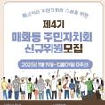 [경기핫타임뉴스=김삼영 기자] 시흥시 매화동 행정복지센터는 12월 9일까지 ‘제4기 매화동 주민자치회’ 신규위원 30명을 공개 모집한다. 신청은 매화동 행정복지센터 방문 또는 전자우편을 통해 가능하다. 매화동 주민자치회는 지역의 다양한 현안에 대해 주민 스스로 자치계획을 수립하고, 주민총회를 통해 실행 방향을 결정하는 주민대표기구다. 제3기 매화동 주민자치회의 임기(2024.01.01.~2025.12.31.)가 만료됨에 따라 '시흥시 주민자치회 및 주민자치센터 설치·운영에 관한 조례'에 기반한 매화동 발전의 혁신적인 마인드를 가진 제4기 신규위원을 선발하며 위원 임기는 2년이고 중도 해촉이 가능하다. 신청 자격요건은 ▲매화동에 주민등록이 돼 있는 사람 ▲매화동에 사업장 주소를 두고 있는 사업장에 종사하는 사람 ▲매화동에 소재한 학교, 기관, 단체 등에 속한 사람 ▲영주의 체류자격을 갖춘 외국인으로서 매화동의 외국인등록대장에 등재된 사람이며, 타 동 주민자치회 위원이나 매화동 관계단체 소속 주민은 지원할 수 없다. 선발된 주민자치회 위원들은 매화동의 발전 방향을 논의하고 자치계획을 수립·집행하는 등