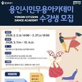 [경기핫타임뉴스=김삼영 기자] 용인문화재단은 2026 용인시민무용아카데미 정규 강좌 '늘 배움 마당'의 수강생을 오는 2월 2일부터 모집한다. 용인시민무용아카데미는 시민 참여형 예술교육 프로그램으로 이미 2025년에 시민들로부터 뜨거운 관심과 사랑을 받은 바 있다. 2025년 12월 6일 평생학습관 큰어울마당에서 진행됐던 ‘Good Life~ 춤추는 용인’ 공연은 많은 관람객이 모이며 성공적으로 마무리됐고, 2026년 교육 사업에 대한 문의도 늘었다. 재단은 시민들의 관심에 힘입어 2026년에는 기존보다 강좌 수를 확대해 더 많은 참여 기회를 제공할 계획이다. 이번 정규 강좌는 한국 무용의 멋과 흥을 느낄 수 있는 ▲산조춤 ▲부채입춤 ▲태평무 ▲소고춤 ▲부채춤 ▲도살풀이춤’과 초등학생을 위한 ▲꽃바구니춤 ▲청사초롱춤 등 강좌가 마련되며, 생활무용 분야에서는 에너지와 열정을 느낄 수 있는 ▲벨리 댄스 ▲뮤지컬 댄스 ▲라인 댄스 ▲셔플 댄스 등 강좌를 운영한다. 여기에 더해 ▲전통 소리반이 신설되어 기대를 모으고 있다. 2026 용인시민무용아카데미 정규 강좌는 오는 3월 7일부터 운영될 예정이며, 수강생 모집은 2