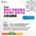 [경기핫타임뉴스=김삼영 기자] 평택시는 주민들이 스스로 만들어가는 만남과 소통의 마을 공간에서 지속이 가능한 공동체 활동을 지원하고자, 지난 27일부터 녪년 평택시 마을공동체 주민제안 공모사업’을 추진한다고 밝혔다. 공모사업은 마을공동체를 처음 시작하는 씨앗기부터 2년 차인 성장기, 3년 차인 열매기로 진행되며, 각각 200만 원, 400만 원, 700만 원 이내로 지원하며, 마을공동체의 우수한 모델을 개발하고 전파하기 위한 기획 공모에는 최대 1000만 원까지 사업비를 지원한다. 주민제안 공모사업은 평택시에 거주하거나 생활권을 영유하는 자발적인 주민 모임으로, 5인 이상으로 구성되어야 하며 주민들의 참여를 바탕으로 지역의 육아, 교육, 노인, 주거환경, 문화 등 다양한 영역에서 마을의 문제를 해결하고 발전하는 공동체 활동 프로그램을 지원하게 된다. 평택시는 작년에 23개의 다양한 공동체 활동을 지원했으며, 10월에는 다양한 공동체들이 시민들과 함께 축제를 진행했고, 12월에는 성과공유회와 공동체 포럼으로 공동체의 발전 방향을 논의했다. 올해에는 최대 25개소의 공동체를 선발할 예정이다. 공모 기간
