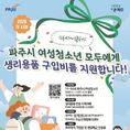 [경기핫타임뉴스=김형철 기자] 파주시는 여성청소년의 건강과 복지 향상을 위해 2026년 3월부터 11~18세 파주시 여성청소년 모두를 대상으로 생리용품 지원금을 지급한다. 지원 대상자는 파주시에 주민등록, 외국인등록, 국내거소 신고가 되어있는 11~18세의 여성청소년으로 월 14,000원씩 연 최대 168,000원의 생리용품 구입비를 모바일 지역화폐로 지급하며, 해당 지역화폐는 생리용품 구매 전용으로 사용이 제한된다. 온라인의 경우 3월 5일 14시부터 경기민원24에서 신청이 가능하며, 방문 신청은 3월 4일부터 주민등록상 주소지 행정복지센터에서 접수한다. 지원금은 신청 이후 자격 조건 검증을 통해 4월 20일부터 순차적으로 지급되며, 신청 자격 확인을 위해 최소 2주 이상의 검토 기간이 소요될 것으로 예상된다. 지원금은 파주시 지역화폐 가맹점으로 등록된 4개 편의점(지에스(GS)25, 시유(CU), 이마트24, 세븐일레븐)과 배달특급 앱의 생리용품 전용몰(온라인)에서 사용할 수 있으며 해당 사용처에서 지원금 사용을 위해서는 경기지역화폐 앱 설치 및 가입이 필수인 점에 유의가 필요하다. 김지숙 청년