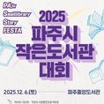 [경기핫타임뉴스=김형철 기자] 파주시 중앙도서관은 오는 6일, 한 해 동안 작은도서관의 다양한 활동을 시민들과 함께 공유하고 운영자들을 격려하기 위한 녩파주시 작은도서관대회 패스 페스타(PASS FESTA)’를 개최한다고 밝혔다. 현재 파주시에는 80여 개의 공사립 작은도서관이 등록되어 있으며, 마을회관, 아파트 단지, 상가, 종교시설 등 생활권 가까이에 위치해 있다. 작은도서관들은 시민들의 독서문화 활성화와 지역 공동체 형성에 중요한 역할을 하고 있다. 파주시는 중앙도서관 전담 인력을 통해 작은도서관을 지원하고 있으며, 도서관리시스템 운영 지원, 지역강사 연계 프로그램 지원, 운영자 역량 강화 교육 등 다양한 활성화 사업을 추진하고 있다. 이번 행사에서는 ▲지역강사와 함께하는 체험활동 ▲작은도서관 홍보공간 운영 ▲책 나눔 행사 ▲작은도서관 발전 유공자 표창 ▲이야기 공연(토크 콘서트) ‘작은도서관에서 만난 순간들’등 다채로운 프로그램이 중앙도서관에서 펼쳐질 예정이다. 임봉성 파주시 중앙도서관장은 “주민자치 기반 활동으로 독서문화 진흥에 앞장서고 있는 작은도서관의 활동을 널리 알리고 격려하는 자리가