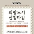 [경기핫타임뉴스=김형철 기자] 동두천시립도서관은 2025년도 희망도서 신청을 오는 11월 30일 마감한다. 마감 이후 접수된 도서는 2026년 1월부터 순차적으로 장서에 반영될 예정이다. 희망도서 서비스는 시민이 원하는 도서를 신청하면 도서관이 검토 후 구입해 장서에 포함하는 제도로, 시민의 독서 수요가 도서 선정에 직접 반영된다는 특징이 있다. 도서관은 연말 장서 정비 기간을 거쳐 마감 이후 신청된 도서를 내년 1월부터 순차적으로 반영할 계획이다. 도서관 관계자는 “희망도서는 시민 참여로 완성되는 장서 정책으로, 참여가 곧 자료의 다양성과 깊이를 높이는 원동력이다”라고 말했다. 동두천시립도서관은 앞으로도 시민의 독서 수요를 적극 반영해 수준 높은 장서 확보와 맞춤형 자료 제공을 위해 지속적으로 노력할 방침이다.