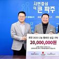 [경기핫타임뉴스=김형철 기자] 파주시는 지난 31일 신세계사이먼 파주 프리미엄 아울렛으로부터 관내 저소득 취약계층 지원을 위한 성금 2,000만 원을 기탁 받았다고 밝혔다. 이날 전달식에는 신세계사이먼 점포 운영 담당 박지윤 상무와 신세계사이먼 파주 프리미엄 아울렛 장윤석 점장을 비롯한 관계자들이 참석했다. 전달된 성금은 경기사회복지공동모금회를 통해 경제적 어려움을 겪고 있는 저소득 주민들의 기초생활 안정과 다양한 복지사업을 위해 사용될 예정이다. 박지윤 상무는 "2026년 새해를 맞아 어려운 이웃들에게 작은 도움이 되길 바란다”라며 “앞으로도 다양한 사회공헌활동을 통해 나눔의 가치를 실천하고, 지역사회와의 상생 발전을 위해 지속적으로 노력하겠다”라고 말했다. 김경일 파주시장은 “신세계사이먼 파주 프리미엄 아울렛의 따뜻한 성금에 감사드리며, 관내 어려운 이웃들이 새해를 시작하는 데 큰 힘이 될 것”이라며 “전달받은 성금은 도움이 필요한 곳에 소중히 사용하겠다”라고 전했다. 한편, 신세계사이먼 파주 프리미엄 아울렛은 2011년 개점한 이후 매년 소외계층 지원, 지역사회 문화행사 및 유관단체 후원 등