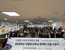 [경기핫타임뉴스=김삼영 기자] 안양시는 지난 7일 안양시 가족센터 3층에서 ‘2025년 가족센터 사업보고회 및 한국어 교육 수료식’이 성황리에 마무리됐다고 10일 밝혔다. 안양시 가족센터가 주관한 이번 행사는 다문화가족, 한국어교육 참여자, 자원봉사자, 유관기관 관계자 등 200여 명이 참여한 가운데 한 해 동안 추진했던 사업 성과를 공유하고, 활동을 격려하는 자리로 마련됐다. 또 지난 3월부터 10월까지 진행된 한국어교육 수료식도 함께 진행됐다. 안양시는 이날 건강가정사업과 다문화사업 활성화를 위해 헌신한 유공자 9명에게 표창장을 수여했으며, 안양시 가족센터는 한국어교육에 80% 이상 출석한 결혼이민자 41명을 대표하여 21명에게 수료장을 전달했다. 이 밖에도 아이돌보미의 노래와 베트남 무용단의 논라춤 등 다채로운 공연을 선보여 다문화인과 비다문화인이 함께 소통하고 화합하는 시간을 가졌다. 오연주 안양시 가족센터장은 “2026년도에도 안양시 모든 가족이 안전하고 건강한 일상을 누릴 수 있도록 더 촘촘한 가족서비스 제공에 최선을 다하겠다” 고 말했다. 행사에 참석한 황인섭 안양시 동안구