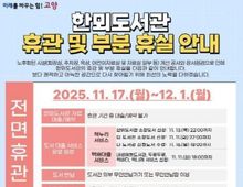 [경기핫타임뉴스=김형철 기자] 고양특례시 한뫼도서관은 공간 및 환경개선 공사 등을 위해 오는 11월 17일부터 12월 1일까지 15일간 임시 휴관한다고 밝혔다. 전체 공사는 부분 휴실을 포함해 내년 2월 준공을 목표로 진행될 예정이다. 이 사업은 경기도 특별조정교부금으로 추진되며, 주요 공사 내용은 △화장실 전면 리모델링 △주차장 환경 개선 △옥상 방수 △자료실 환경 개선 △승강기 교체 등으로, 노후화된 시설을 전면 정비해 이용자의 안전과 편의를 높이는 데 중점을 두었다. 2008년 3월 개관한 한뫼도서관은 개관 18년이 지난 도서관으로, 시설 노후로 인한 불편과 이용 만족도 저하 등 이용자 민원이 지속적으로 제기돼 왔다. 이번 공사를 통해 시민들이 보다 쾌적하고 안전한 환경에서 도서관을 이용할 수 있을 것으로 기대된다. 임시휴관 기간에는 자료 대출 및 예약, 도서택배서비스, 책누리(상호대차), 시설 이용, 대관 등 모든 서비스가 중단된다. 다만, 자료 반납은 도서관 외부에 설치된 무인반납기기 또는 무인반납함을 통해 가능하며, 희망도서 신청은 정상 운영돼 재개관 후 수령할 수 있다. 이