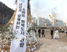 [경기핫타임뉴스=김삼영 기자] 안양시는 3월 3일 정월대보름을 맞아, 지난달 28일 오후 3시부터 7시까지 만안구 만안교와 박석교 일원에서‘안양만안답교놀이 및 정월대보름 달맞이 축제’가 열렸다고 1일 밝혔다. 행사는 안양문화원(대표 김용곤) 주관으로 열렸으며. 오후 3시 만안교에서 안양시 향토유산(향토문화재) 제8호인 안양만안답교놀이 재현으로 시작됐다. 안양만안답교놀이는 조선시대 돌다리인 만안교를 중심으로 정월대보름에 다리를 밟으며 한해의 무병장수와 복을 기원하던 세시풍속이다. 안양만안답교놀이보존회는 답교놀이 중 길놀이, 다리밟기놀이, 무동춤놀이 등을 재현했다. 15시부터 박석교 밑 둔치에서는 달맞이 축제가 진행됐다. 시민들은 오곡밥, 부럼 등 보름 음식을 나누고, 윷놀이와 제기차기 등 전통 놀이를 체험했다. 달집태우기는 오후 6시 시민 400여 명이 함께한 가운데 시작됐다. 시민들은 소원지를 달집에 묶어 태우며, 한 해의 희망을 기원했다. 귀밝이술과 기원제 음식을 나누는 복 나누기도 이어졌다. 시 관계자는 “전통 세시풍속을 통해 공동체의 의미를 되새기는 자리였다”며, “