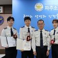 [경기핫타임뉴스=김형철 기자] 파주소방서는 8일 오전 서장 집무실에서 시민의 생명 보호와 소방행정 발전에 기여한 업무 유공 소방공무원에 대한 표창 수여식을 개최했다고 밝혔다. 이번 수여식은 각종 재난 현장과 응급의료 위기 상황 속에서도 투철한 사명감으로 맡은 바 직무를 성실히 수행한 직원들의 노고를 치하하고 사기를 진작하기 위해 마련됐다. 이날 행사에는 수여 대상자 11명 중 근무자 등을 제외한 5명이 참석했으며, ▲중증세이버 순금기장 ▲의정갈등 대응 유공(소방청장) ▲구급업무 유공(도지사) 분야에 대한 시상이 진행됐다. 특히 광탄119안전센터 박진호 소방장과 탄현119안전센터 김우진 소방장은 남다른 헌신을 인정받아 2개 분야에서 동시에 수상하는 영예를 안았다. 박진호 소방장은 ‘중증세이버 순금기장’과 의정갈등 상황 속 비상 진료 체계 유지에 기여한 공로로 소방청장 표창을, 김우진 소방장은 중증 응급환자의 생명을 소생시킨 공로로 ‘중증세이버 순금기장’과 함께 구급현장분야 유공 표창을 각각 수여 받았다. 또한 운정119안전센터 황보라 소방사가 중증세이버 순금기장을, 재난대응과 전영대 소방