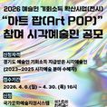 [경기핫타임뉴스=김삼영 기자] 경기도와 경기문화재단이 “2026 예술인 기회소득 확산사업(전시)“의 일환으로 진행하는 “아트 팝(Art POP)” 참여 시각예술인을 공개 모집한다. ‘2026 예술인 기회소득 확산사업(전시)’은 2023년부터 2025년까지 '경기도 예술인 기회소득'을 지원받은 시각예술인에게 지속적인 예술 창작 발표의 기회를 제공하고, 도민에게는 문화예술 향유 기회를 확대하기 위해 마련된 행사다. “아트 팝”의 신청 대상은 2023년부터 2025년까지 '경기도 예술인 기회소득'을 지원받은 시각예술 분야의 경기도 거주 예술인이다. 3년 동안 1회라도 지원을 받았다면 신청할 수 있고, 기존 “예술인 기회소득 페스티벌(전시)”에 참여한 이력이 있어도 신청 가능하다. 신청을 원하는 예술인은 국가문화예술지원시스템(NCAS)을 통해 지원신청서, 예술인 기회소득 지급 사실 증빙 자료 등을 제출하면 된다. 특히 이번 “아트 팝”에는 회화, 조각, 공예, 설치, 미디어, 일러스트, 웹툰, 그래피티 아트, 디지털 페인팅 등 모집 분야를 확대해 보다 다양한 시각예술 분야의 예술인들이 참여할 수 있도록 했