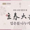 [경기핫타임뉴스=김삼영 기자] 수원박물관이 2026 수원 방문의 해를 맞아 1월 31일 오후 1시부터 3시까지 박물관 1층 로비에서 세시(歲時) 행사 ‘입춘첩 나누기’를 연다. 관람객에게 서예가 근당 양택동 선생의 친필 입춘첩을 배부한다. 입춘첩은 새해 첫 절기인 입춘에 액운을 막고 행운과 건강을 기원하며 대문이나 기둥에 붙이는 글귀다. 참가자는 ‘입춘대길 만사여의(立春大吉 萬事如意)’ 등 사전 선정한 문구 가운데 하나를 선택할 수 있다. 참가비는 1인당 1000원이며, 현장에서 신청해야 한다. 수원박물관 관계자는 “새해 첫 절기인 입춘에 전통 세시풍속을 시민들과 함께 나누기 위해 ‘입춘첩 나누기’ 행사를 매년 열고 있다”며 “박물관을 찾아 한 해 소망을 담은 입춘첩을 받으시고, 건강하고 행복하게 병오년을 보내시길 바란다”고 말했다.