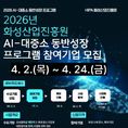 [경기핫타임뉴스=김삼영 기자] 화성산업진흥원(원장 전병선)은 대기업과 관내 중소기업 간의 상생협력 지원을 위해 공급가치사슬 전체의 경쟁력 향상을 위해 오는 4월 24일까지 ‘2026년 AI-대중소 동반성장 프로그램’ 참여기업을 모집한다. 이번 사업은 본 프로그램은 수요기업이 AI 기반 제품·서비스 관련 과제를 제안하고, 이를 화성시 중소기업과 공동으로 개발·사업화를 추진하는 방식으로 운영된다. 지난 2월 수요기업 모집을 통해, ▲항공우주 ▲자율주행 로봇 ▲자동화 ▲영상 ▲CS 등 총 14건의 수요과제가 접수됐으며, 향후 수요기업과 참여기업 간의 매칭을 통해 과제를 수행하게 된다. 총 5개사를 지원하는 이번 사업은 화성시 소재 중소·벤처기업은 누구나 신청 가능하며, 적격/발표 심사를 거쳐 선정할 계획이다. 선정기업은 기업당 최대 5,000만원의 사업화 자금을 지원받게 되며, 수요기업의 구매 확약을 바탕으로 제품 구매 실적을 달성할 수 있다. 전병선 화성산업진흥원장은 “이번 사업은 AI 기술을 보유한 화성시 중소·벤처기업이 대·중견기업과의 거래 물꼬를 틀 기회”라며 “지속 가능한 협력 기반을 구축해 공
