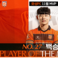 [경기핫타임뉴스=김삼영 기자] 화성FC의 핵심 미드필더 백승우가 팬 투표를 통해 2025시즌 11월 월간 MVP로 선정됐다. 이번 팬 투표는 11월 26일(수)부터 11월 27일(목)까지 이틀간 구단 공식 SNS를 통해 진행됐으며, 전체 투표자의 72%를 얻은 백승우는 압도적인 득표율로 11월의 주인공이 됐다. 백승우는 올 시즌 왕성한 활동량과 날카로운 침투를 바탕으로 팀 공격의 연결고리 역할을 맡아왔다. 화성FC의 프로 첫 홈경기였던 충남아산전에서 데뷔골을 터뜨린 데 이어, 곧바로 이어진 경남과의 경기에서도 연속 득점을 기록하며 팀의 핵심 자원으로 자리매김했다. 특히 11월 김포전에서는 팀이 뒤지고 있는 상황에서도 득점을 만들어내며 끝까지 포기하지 않는 끈기와 집념을 보여줬다. 백승우는 “올 시즌 마지막 달인 11월 MVP로 선정돼 영광이고, 덕분에 한 해를 행복하게 마무리할 수 있을 것 같다. 한 시즌 내내 아낌없는 응원을 보내주신 팬분들께 진심으로 감사드리며, 내년에도 많은 사랑과 응원 부탁드린다.”고 소감을 전했다.