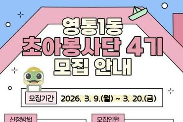 수원시 영통구 영통1동 '초아봉사단 4기' 단원 모집
