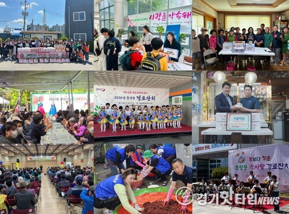 중앙동은 ‘2024년 중앙동 경로잔치’, 남촌동 ‘효(孝) 경로잔치’, 대원1동은 ‘2024년 대원1동 경로잔치’, 신장1동은 오산노인종합복지관과 함께 ‘신장1동 경로 효(孝) 큰잔치’, 초평동 ‘효(孝)사랑 경로잔치’를 개최해 관내 어르신 수백 명을 모시고 관내 어린이집 원아들의 다양한 공연 등과 함께 카네이션을 전달했다.