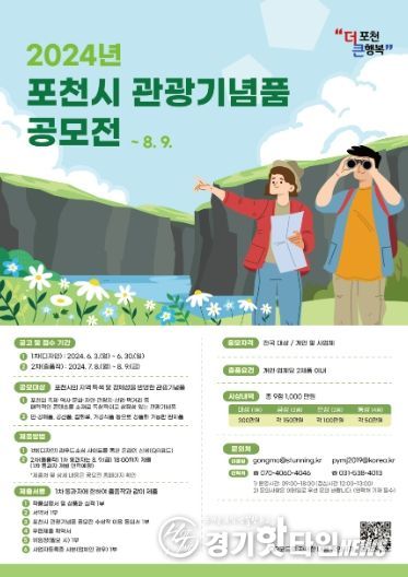 [경기핫타임뉴스=김삼영 기자] 포천시는 포천시의 고유한 지역 특성과 정체성을 반영한 관광기념품을 발굴하고 육성하기 위해 전 국민을 대상으로 ‘2024년 포천시 관광기념품 공모전’을 개최한다.